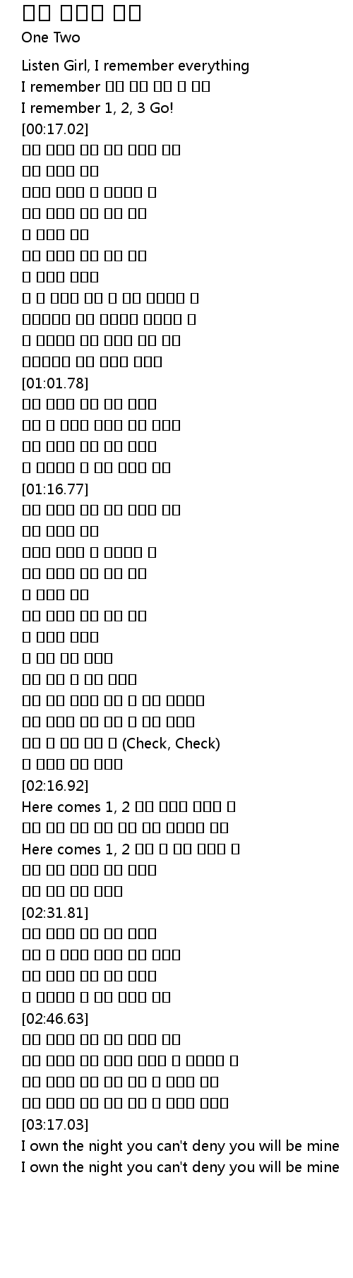 | [02:17.07] | Here comes 1, 2 지난 추억이 되버린 너 |
