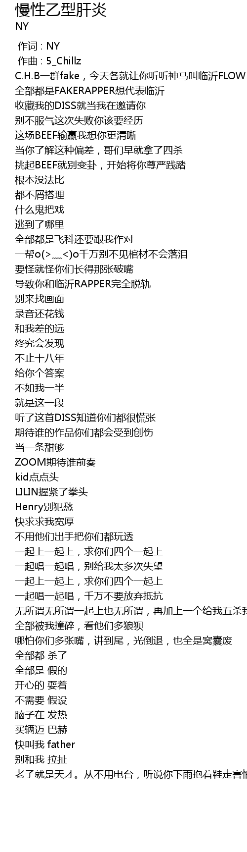 | [00:23.912] | C.H.B一群fake,今天各就让你听听神马叫临沂FLOW,神马叫水瓶的差距 |