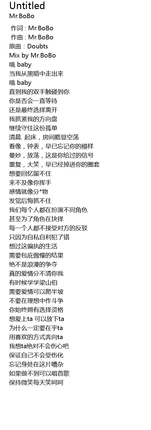 | [00:00.000] | zuò cí : Mr. BoBo |