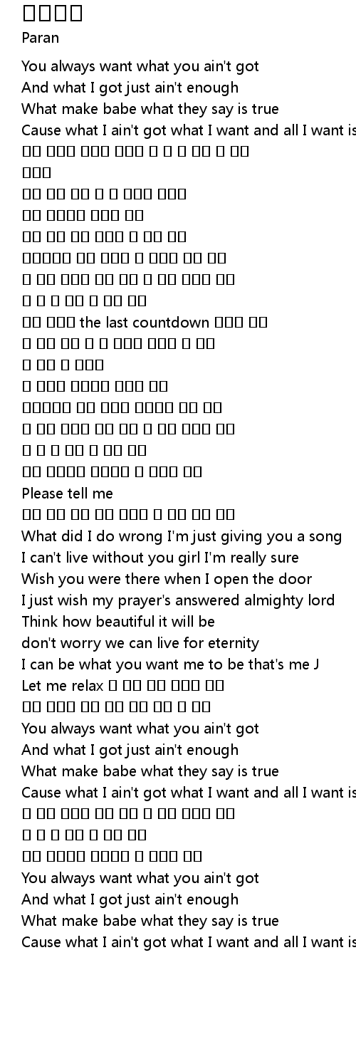 | [00:14.345] | Cause what I ain' t got what I want and all I want is you |
