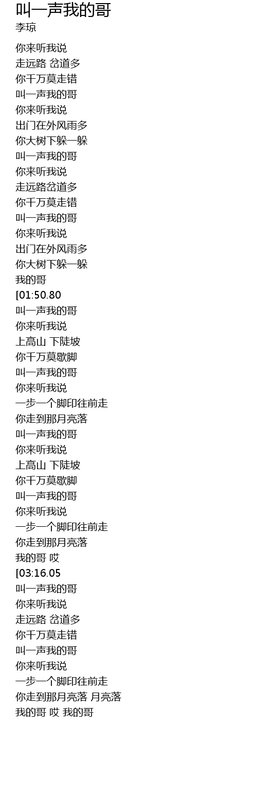 | [01:54.66][01:50.80][01:42.86] | 哥 呀 我的哥呀 |