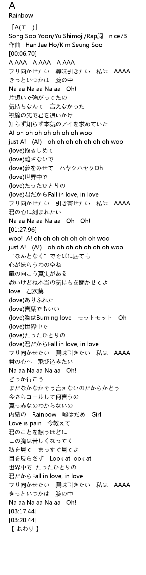 | [00:02.70] | Song Soo Yoon/Yu Shimoji/Rap詞:nice73 |