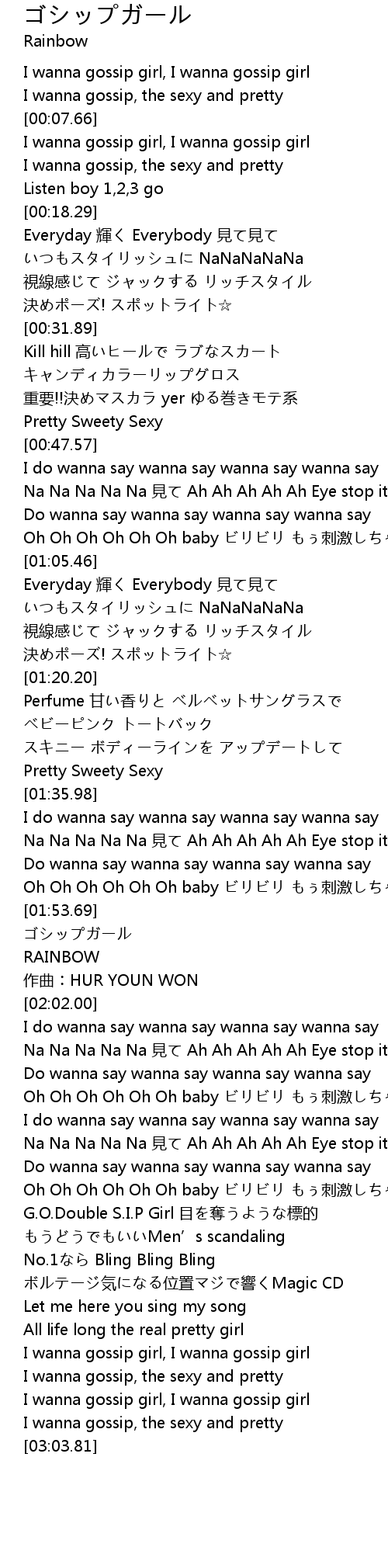 | [02:52.53] | I wanna gossip, the sexy and pretty |