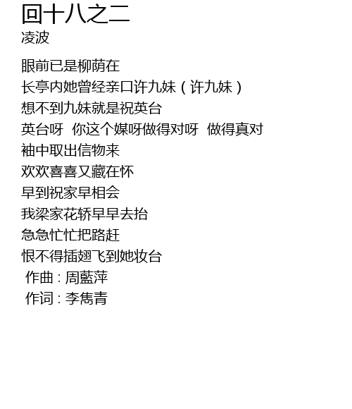 | [00:22] | xiǎng bú dào jiǔ mèi jiù shì zhù yīng tái |