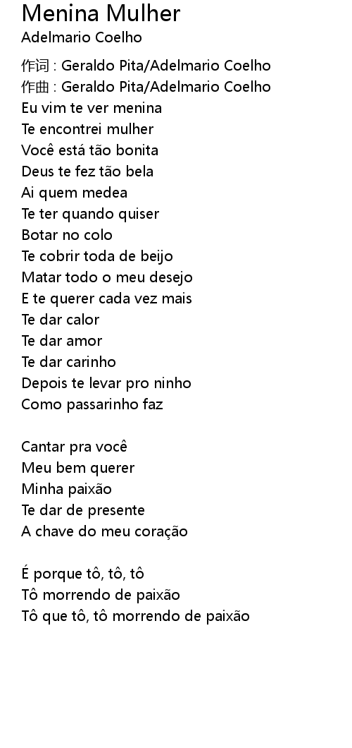 | 作词 : Geraldo Pita/Adelmario Coelho | |