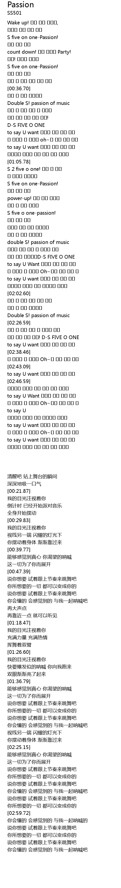 | [00:21.87] | S five on onePassion! |