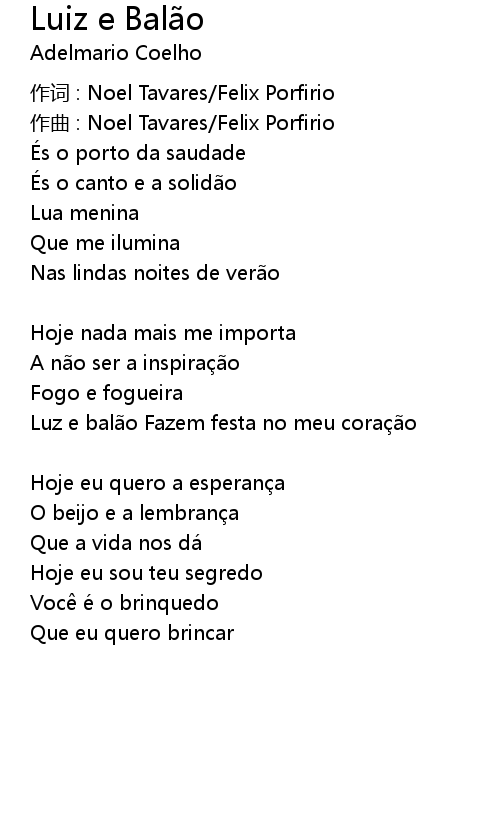 | 作词 : Noel Tavares/Felix Porfirio | |
