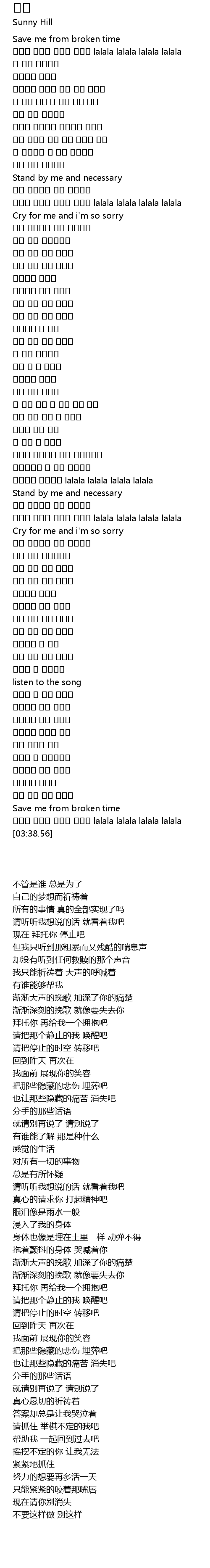 | [03:37.10] | 라라라 라라라 라라라 라라라 lalala lalala lalala lalala |