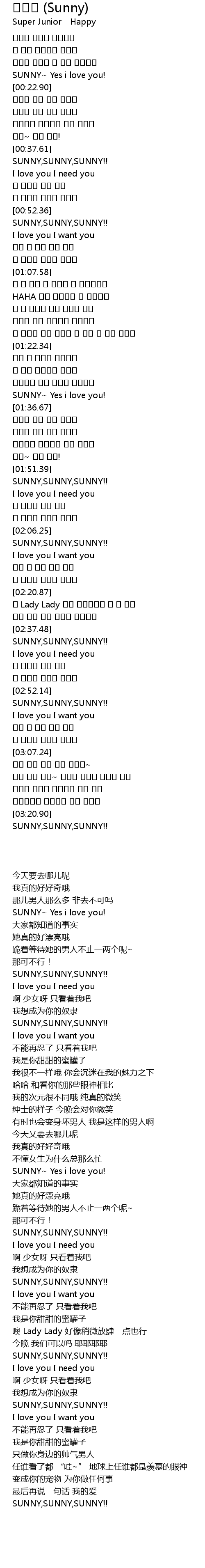 | [00:19.56] | SUNNY~ Yes i love you! |
