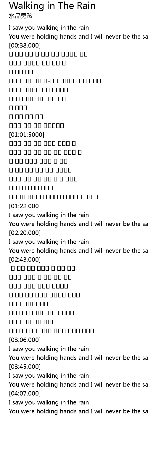 | [00:21.000] | I saw you walking in the rain |