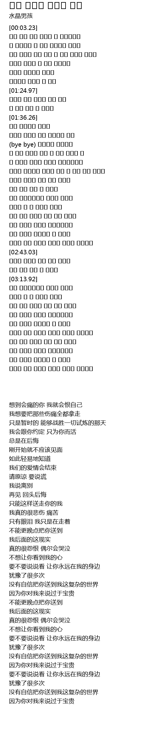 | [01:42.64] | (bye bye) 돌아서서 후회하는 |