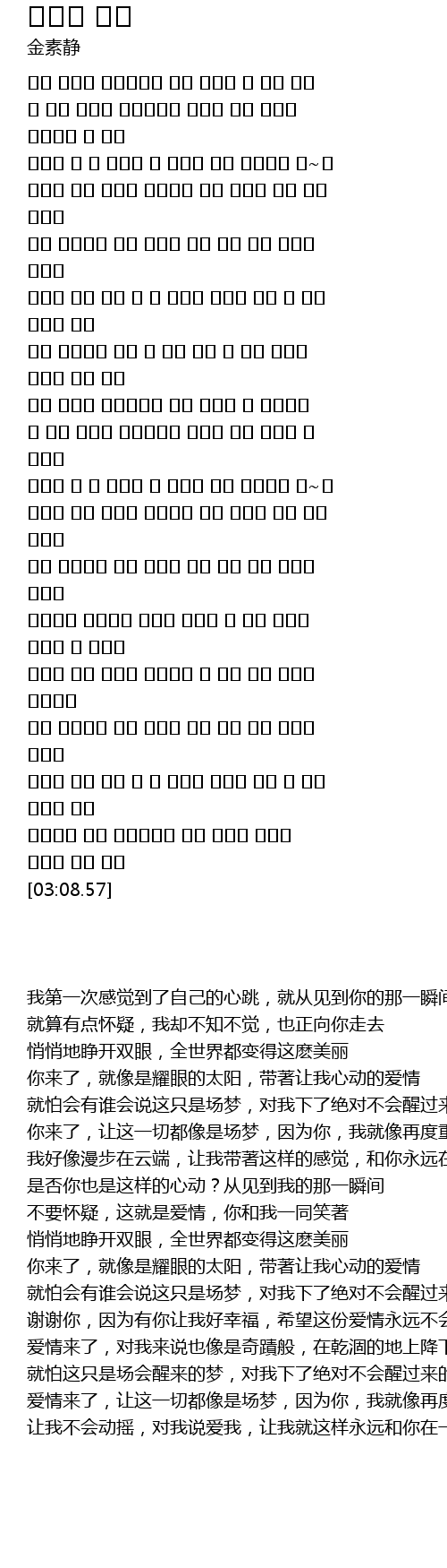 사랑이 왔죠 모든 게 다 꿈처럼 그대로 인해 나 다시 태어난 거죠 |