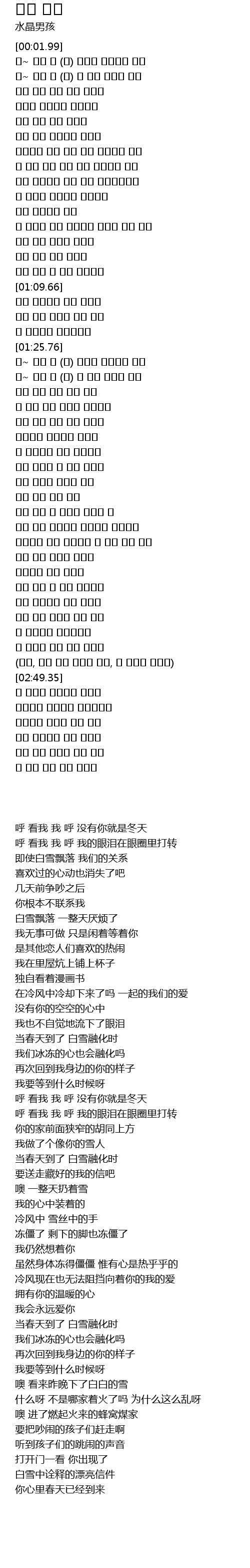 | [03:04.95] | 하얀 눈에 새겨논 예쁜 편지 |