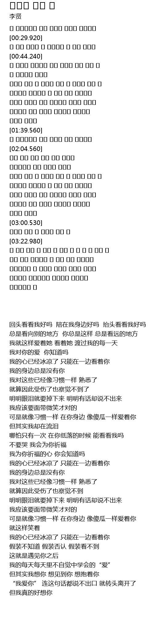 [00:16.410] 날 돌아봐줘요 곁에 있어요 고개를 돌려봐요