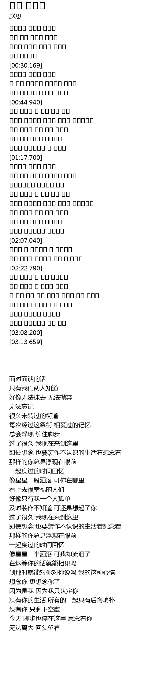| [00:34.430] | 이 길을 지날때면 좋아했던 기억이 |