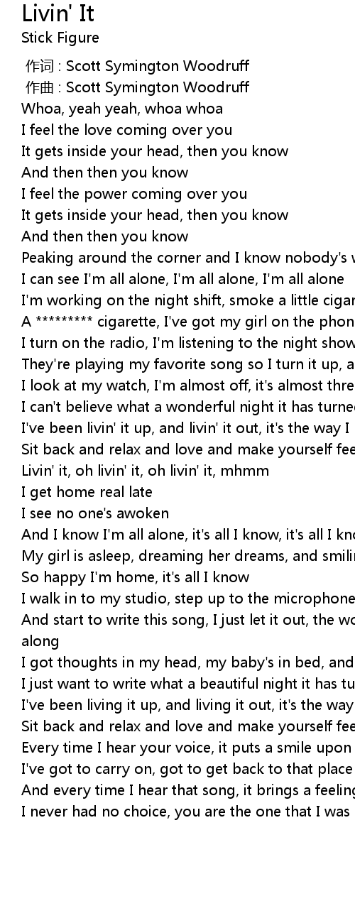 | [02:22.26] | Livin' it, oh livin' it, oh livin' it, mhmm |