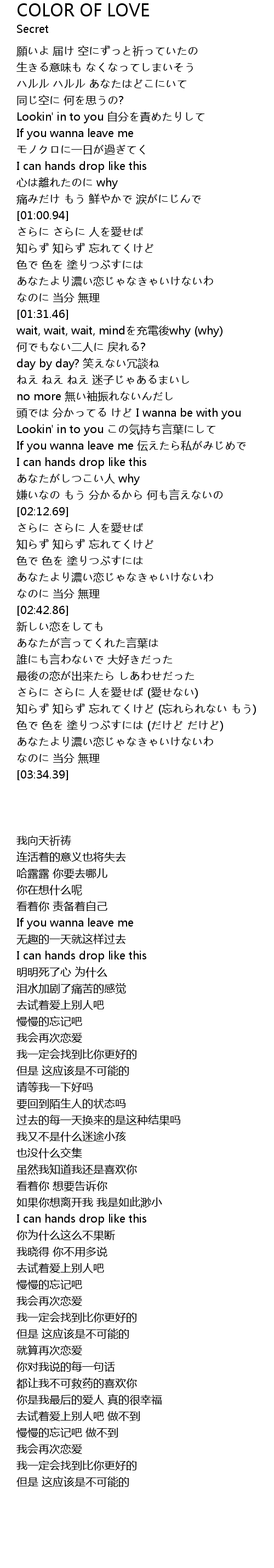 | [02:53.11] | 誰にも言わないで 大好きだった |