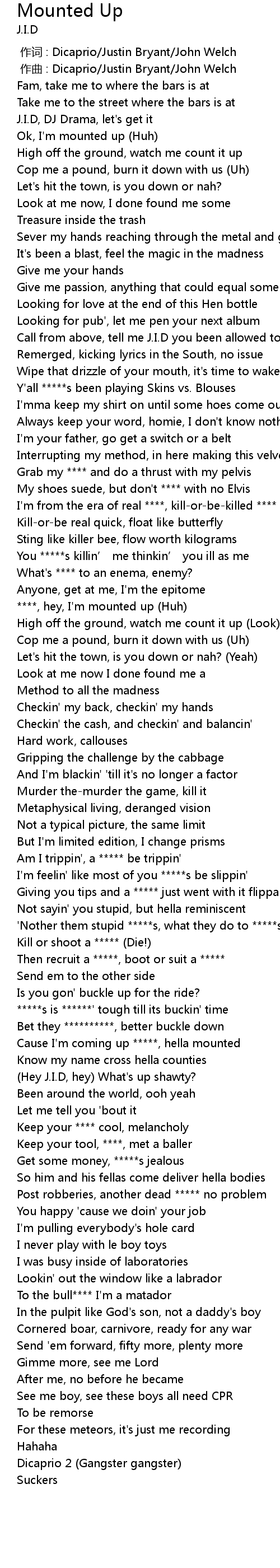 | [01:22.45] | ****, hey, I'm mounted up (Huh) |