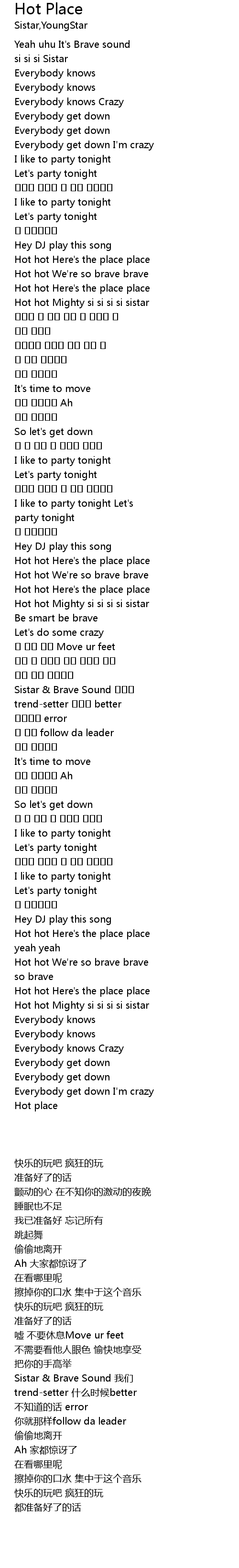 | [02:09.040] | Sistar & Brave Sound 우리가 |
