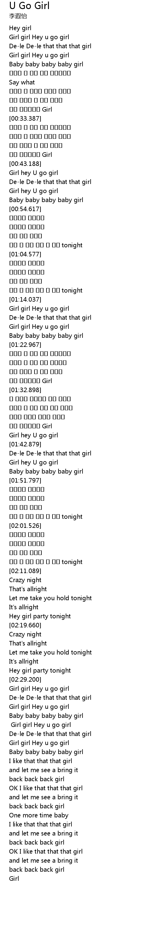 | [02:39.500] | Girl girl Hey u go girl |