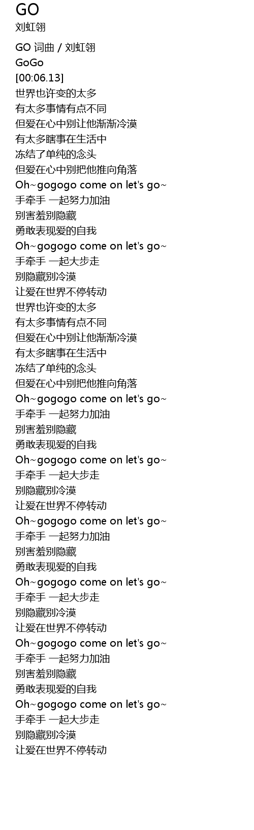 | [00:01.39] | GO 词曲 / 刘虹翎 |