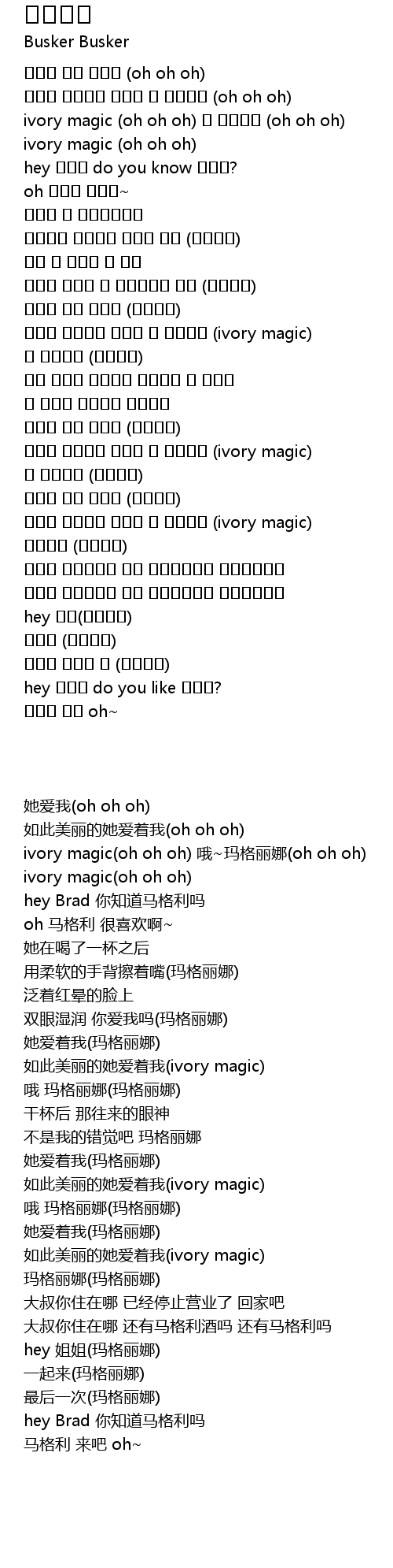 | [00:18] | ivory magic (oh oh oh) 오 막걸리나 (oh oh oh) |