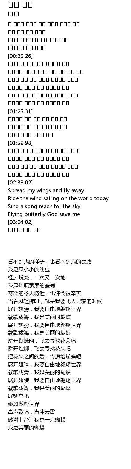 | [03:28.48] | 나는 아름다운 나비 |