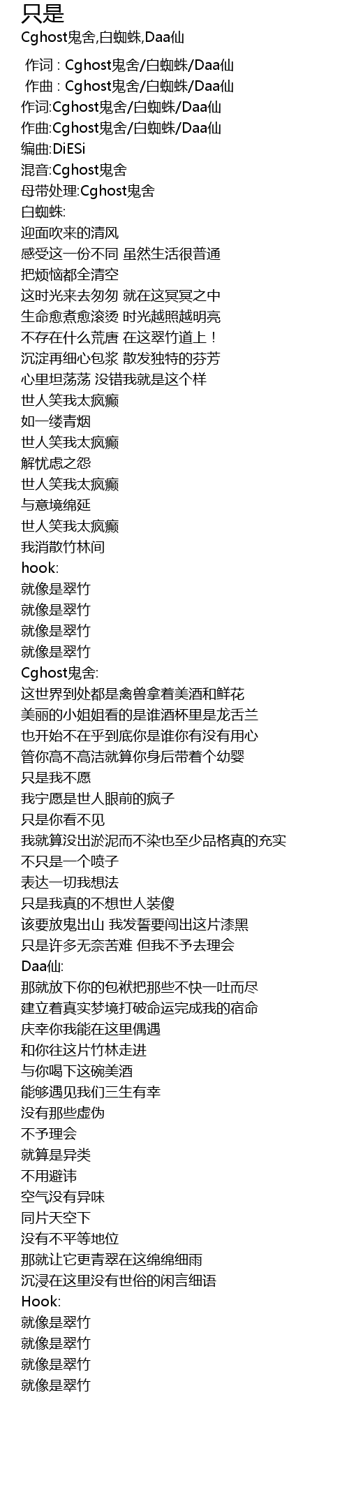 | [00:01.752] | 作词:Cghost鬼舍/白蜘蛛/Daa仙 |