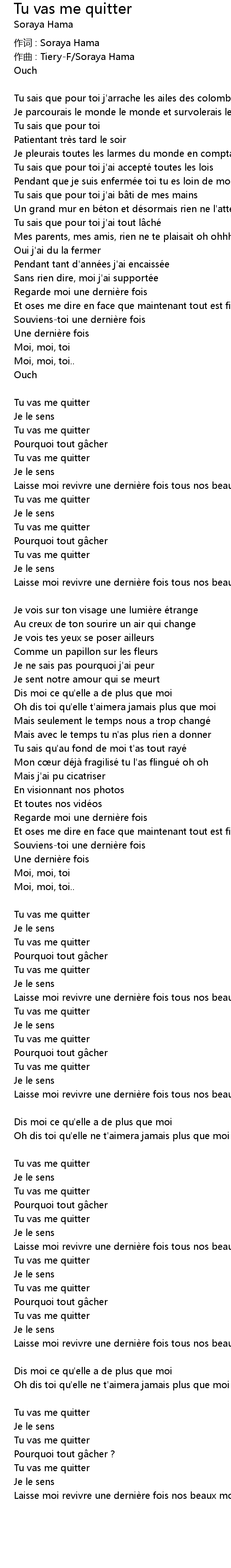| Et oses me dire en face que maintenant tout est fini oh | |
