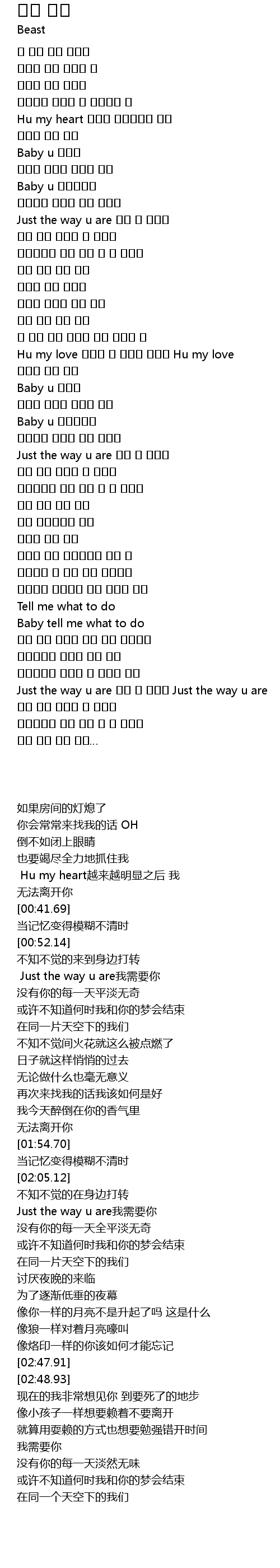 | [02:57.68] | Just the way u are 니가 난 필요해 Just the way u are |