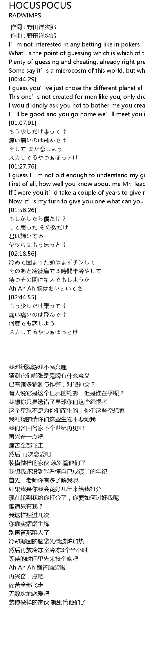 | [00:00.000] | 作词 : 野田洋次郎 |