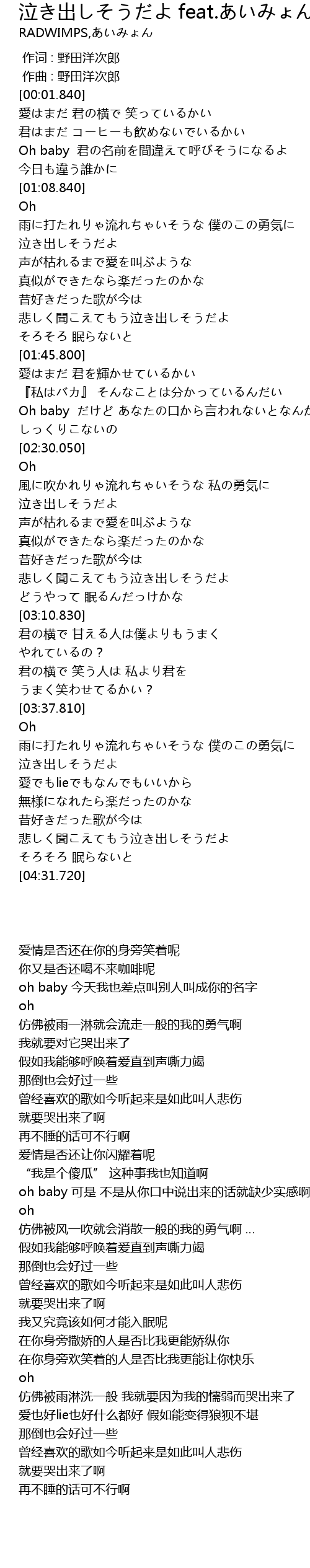 | [02:50.580] | 昔好きだった歌が今は 悲しく聞こえてもう泣き出しそうだよ |