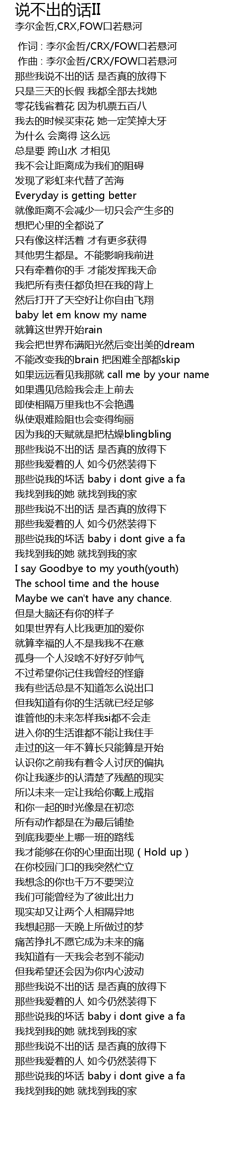 | [00:01.000] | 作曲 : 李尔金哲/CRX/FOW口若悬河 |