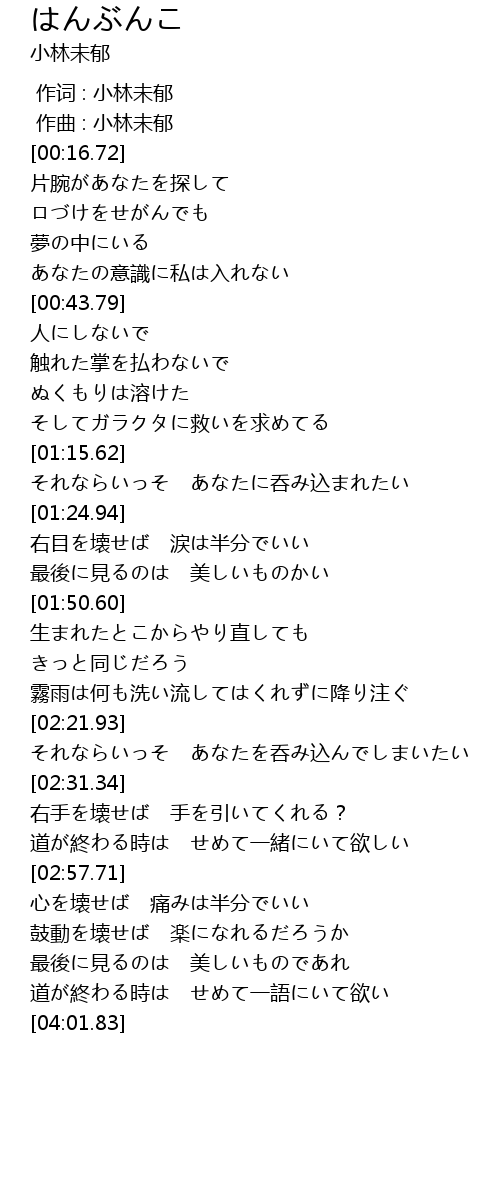 | [01:25.15] | 右目を壊せば 涙は半分でいい |