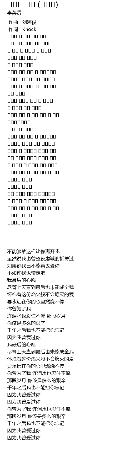| [04:11.840] | 천년이 가도 난 너를 잊을 수 없어 |
