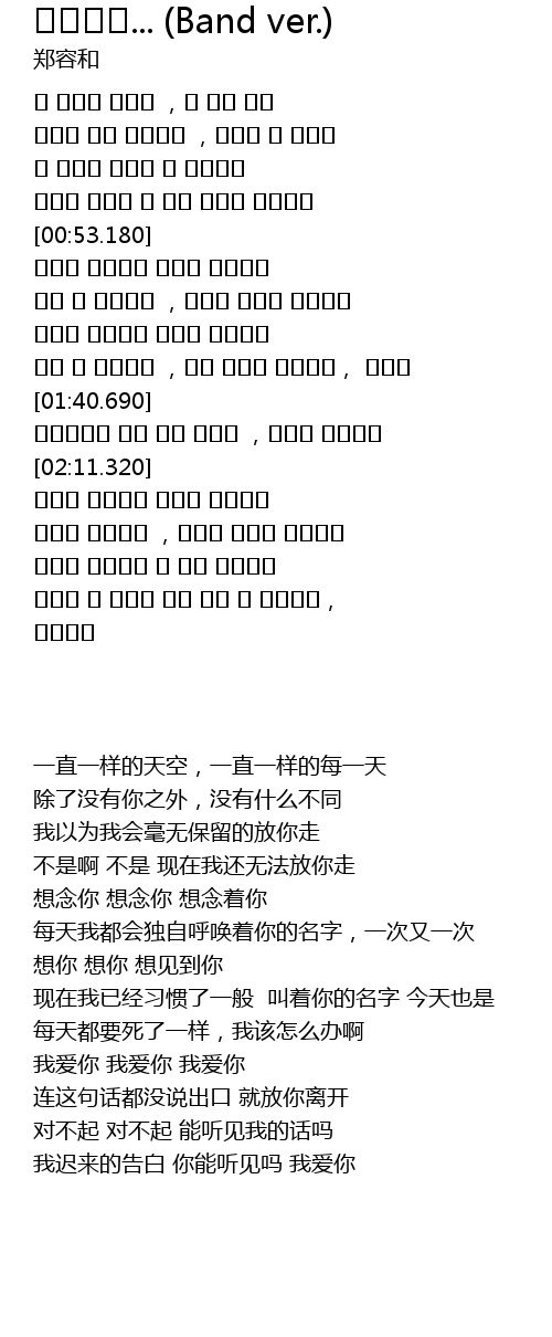 | [02:43.970] | 뒤늦은 내 고백을 그댄 들을 수 있을까요, 사랑해요 |