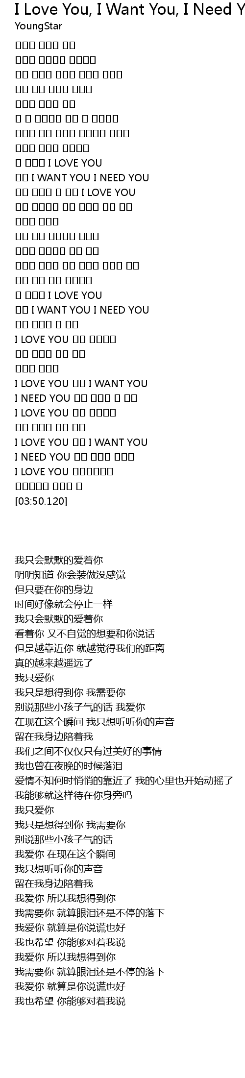 | [03:23.440] | I LOVE YOU 그저 I WANT YOU |