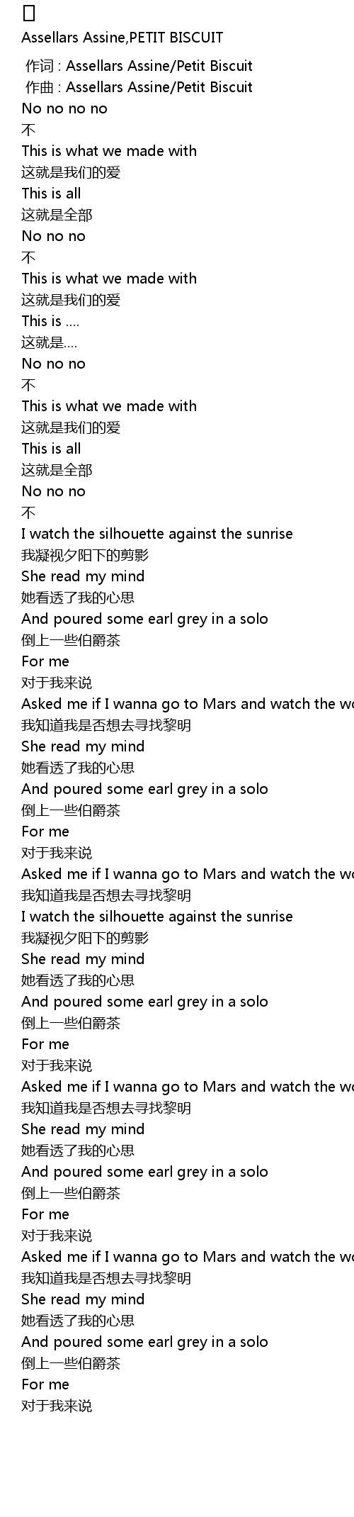 | [00:01.000] | zuò qǔ : Assellars Assine Petit Biscuit |