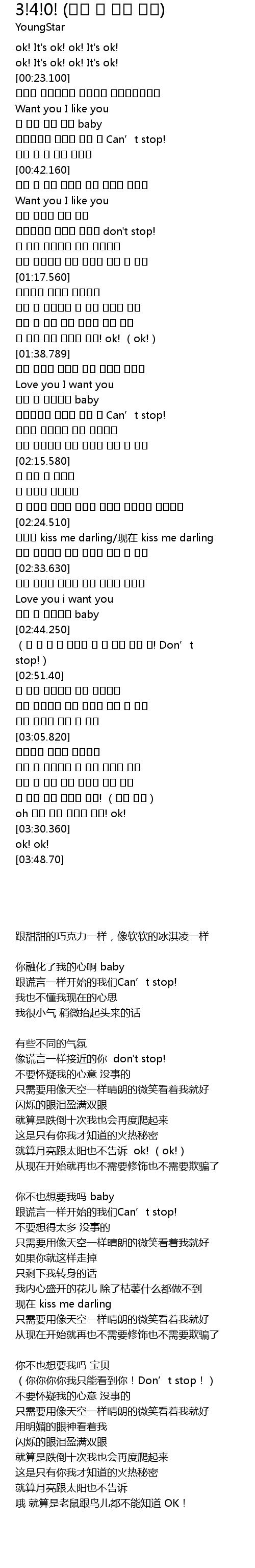 | [03:20.530] | 저 해와 달도 모르게 조심! (우리 둘이) |