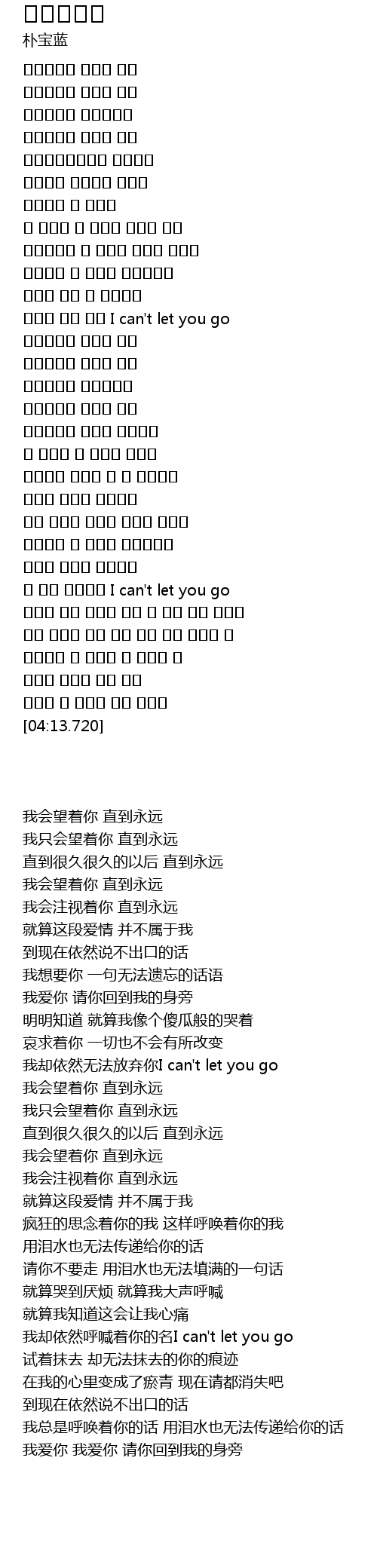 | [01:18.480] | 너만을 포기 못해 I can't let you go |