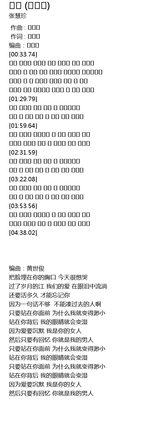 | [02:02.48] | 사랑 때문에 침묵해야 할 나는 당신의 여자 |