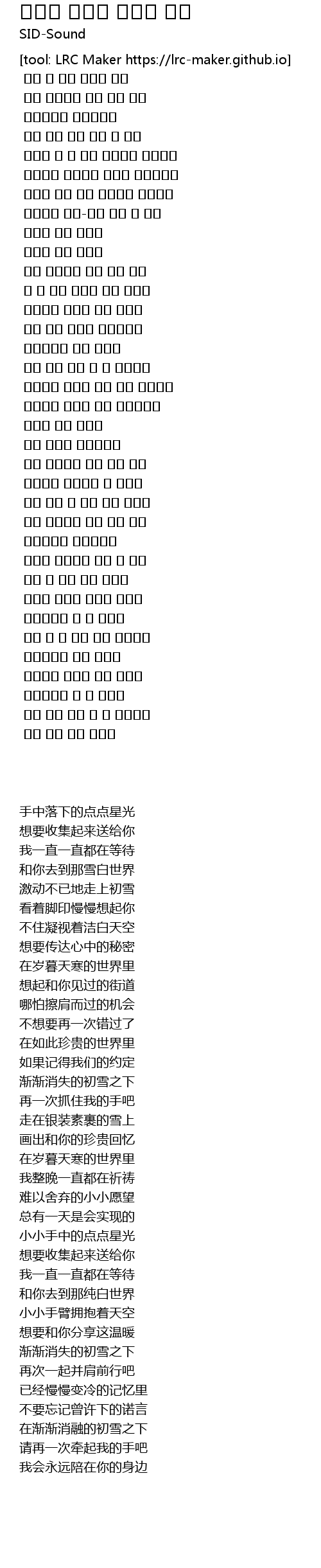 | [00:21.368] | 하얀 세상 속에 함께 해 줘요 |