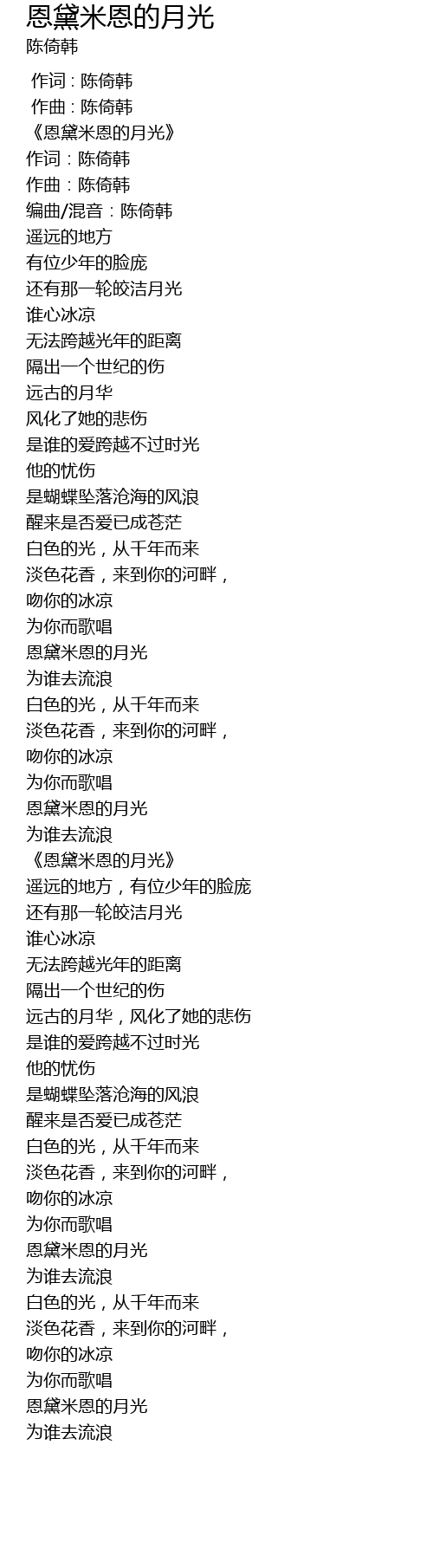 | [00:29.143] | 编曲/混音:陈倚韩 |