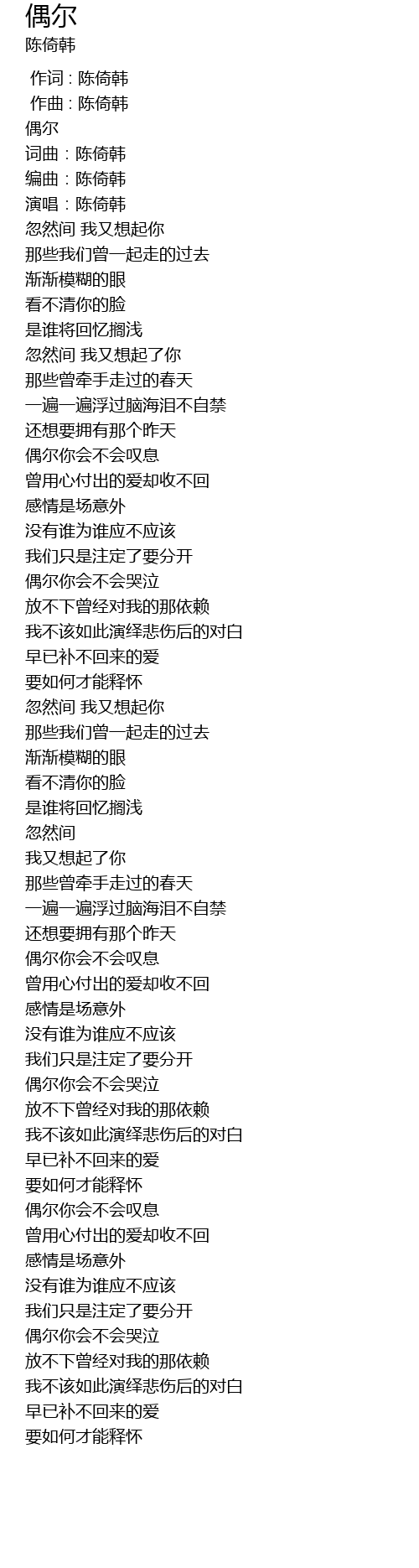 | [00:04.382] | 词曲:陈倚韩 |