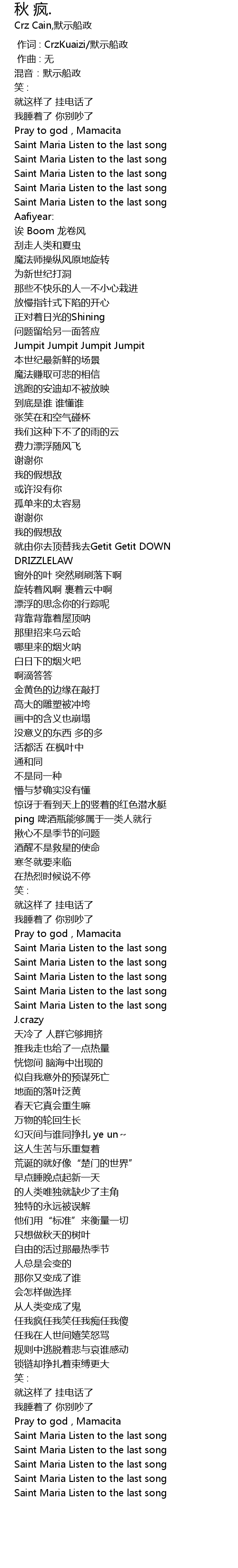 | [00:32.481] | Saint Maria Listen to the last song |