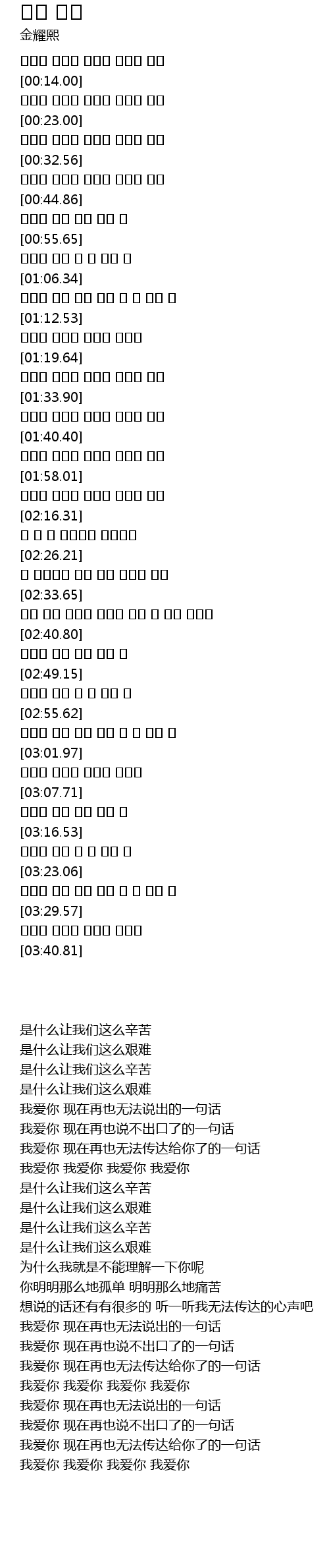 | [03:03.33] | 사랑해 사랑해 사랑해 사랑해 |