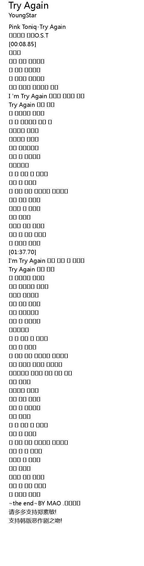 | [01:43.42] | I'm Try Again 혼자 앓던 내 사랑도 |