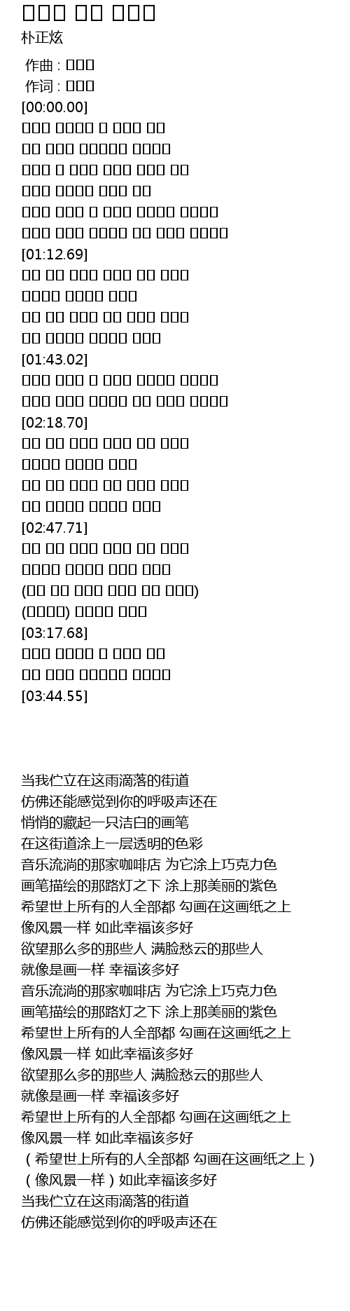 | [03:19.22] | 빗방울 떨어지는 그 거리에 서서 |