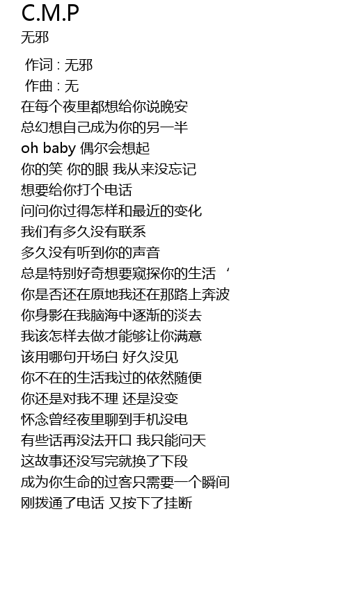 | [00:00.000] | 作词 : 无邪 |