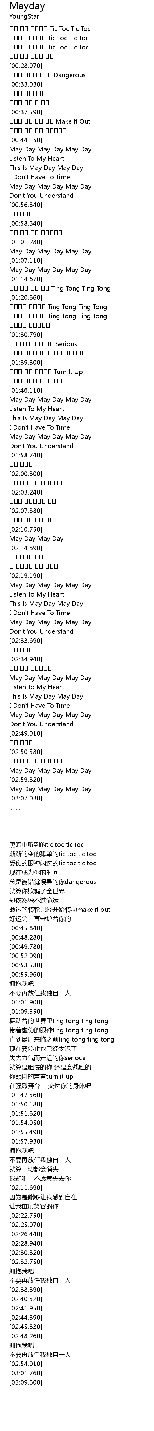 | [00:23.160] | 상처받은 눈빛으로 Tic Toc Tic Toc |
